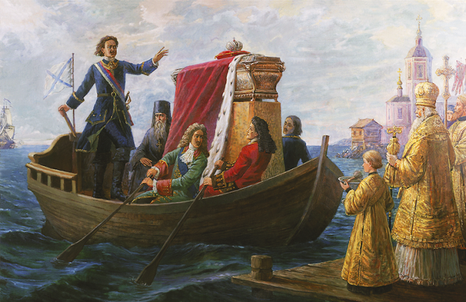 Два события Петровской эпохи – основание новой столицы (1703) и борьба со шведами (Северная война, 1700–1721) – предопределили интерес первого российского императора к крупнейшей личности русского Средневековья Александру Невскому. При возведении Санкт-Петербурга формировался миф о святых – покровителях города. Главный небесный патрон царя были апостол Петр, в честь которого и назвали новую столицу, а также святой благоверный великий князь Александр Ярославич.