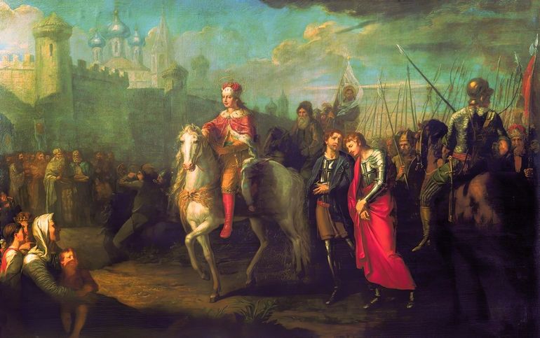 Ф. Моллер. Въезд Александра Невского во Псков после битвы на Чудском озере. XIX век.