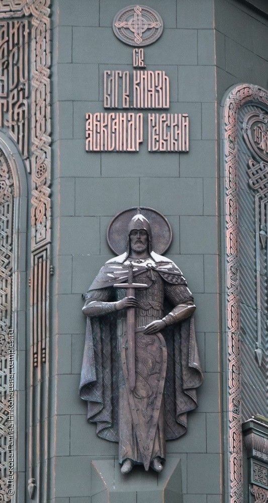 В парке Патриот на фасаде Собора Воскресения Христова, Главного Храма Вооруженных Сил России установлен Барельеф Святого благоверного князя Александра Невского.